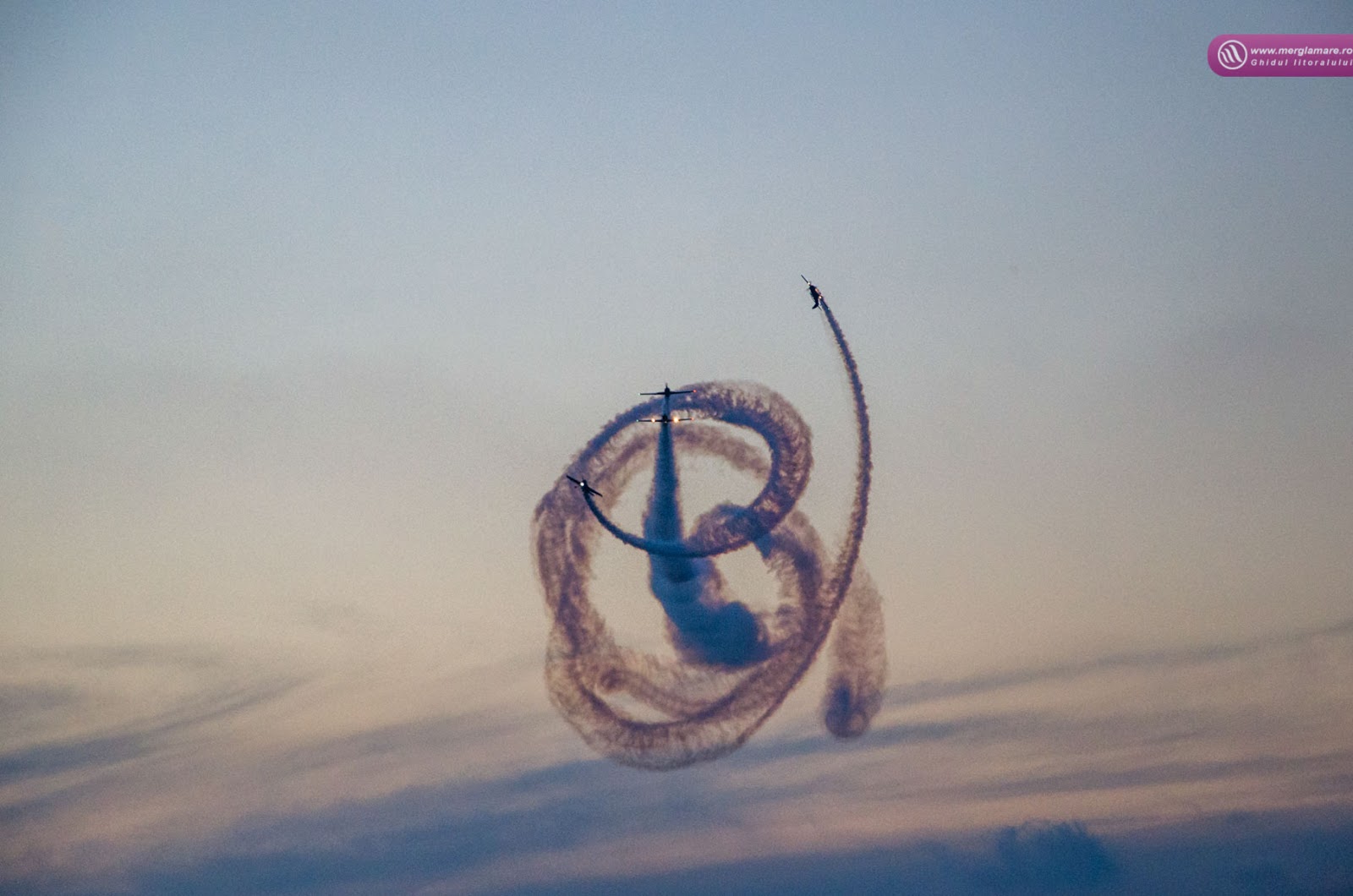 Pfff..m-am bucurat ca un copil de toate lucrurile frumoase pe care le-am văzut, de la acrobații superbe, la exerciții, coborâri cu parașuta, la desenat de inimioare pe cer cu avionul ( aici m-a impresionat marele pilot Jurgis Kairis , care la 66 de ani, ne-a arătat că vârsta e doar un număr), sau la desenat inimioară cu săgeată cu 3 avioane în sincron.