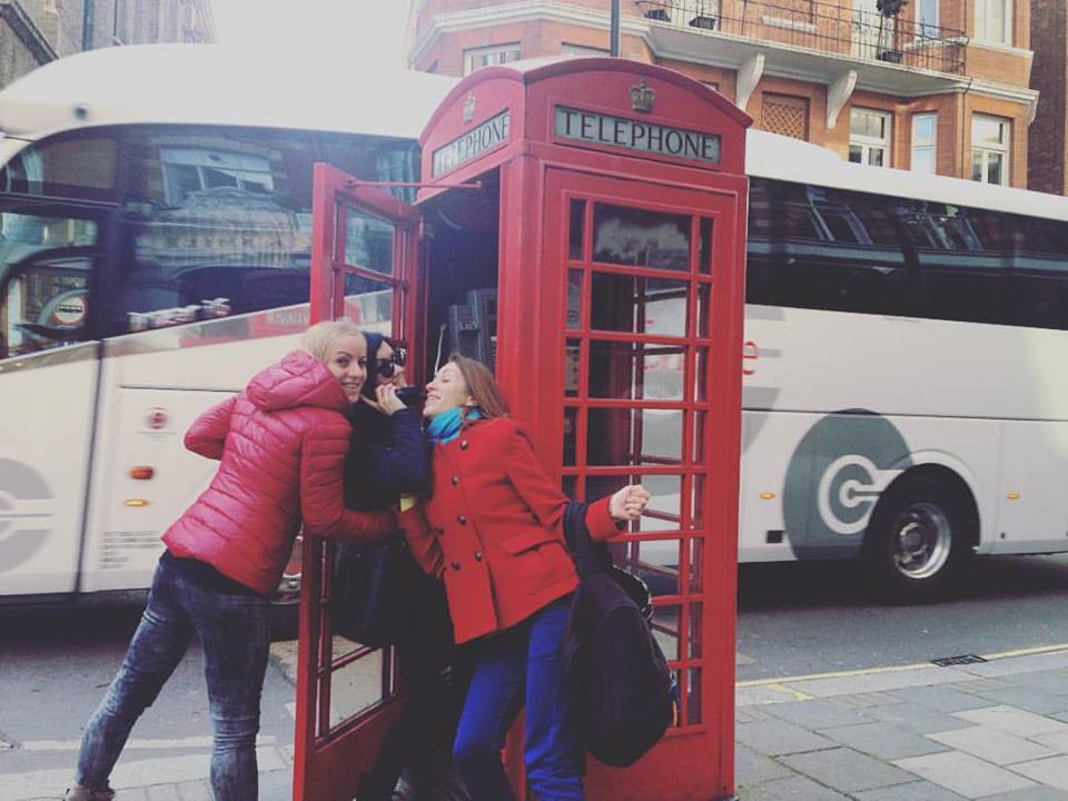 După schimbarea gărzii, n-am putut rata ocazia de a ne distra la celebrele cabine telefonice londoneze.
