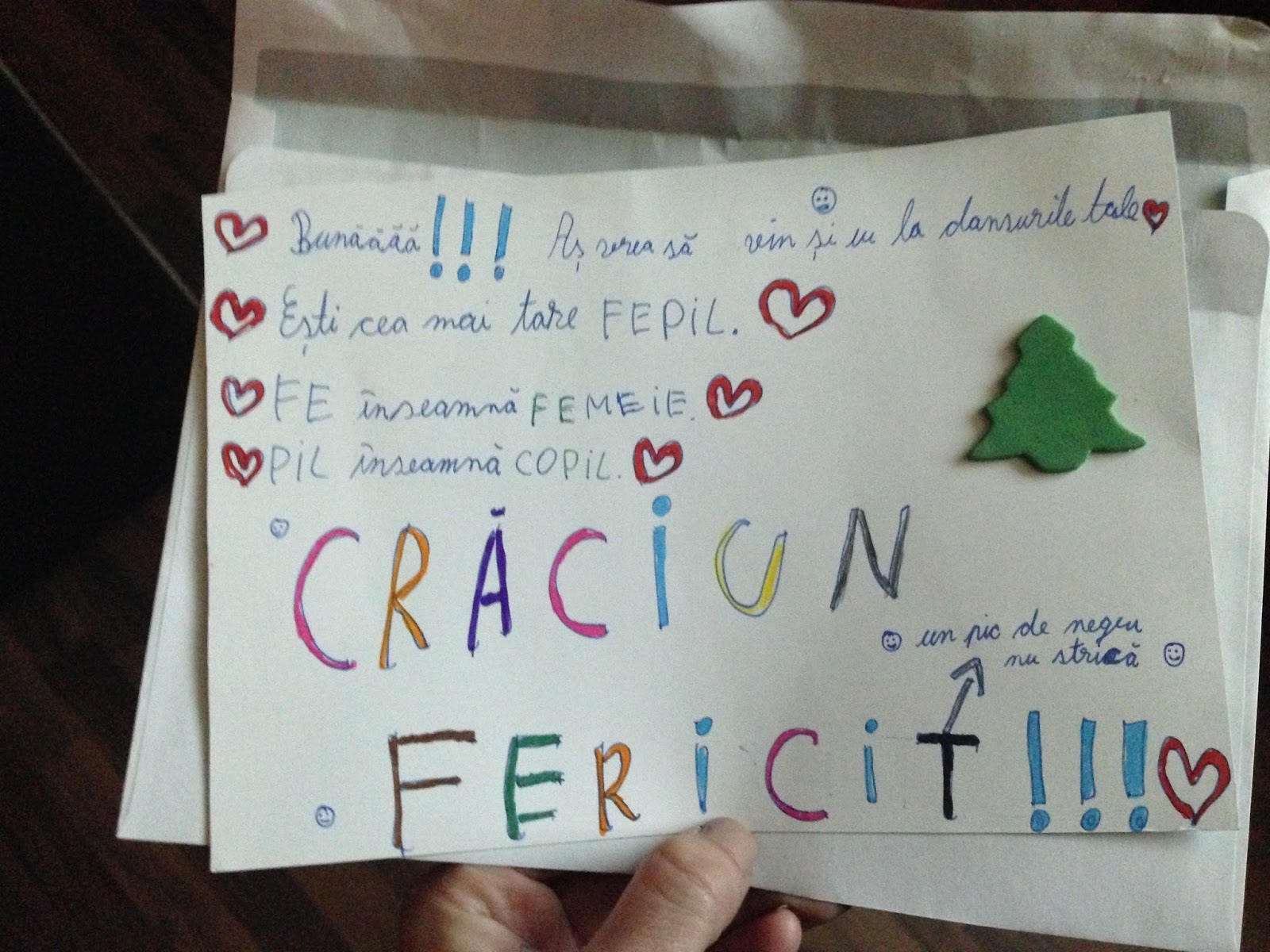 Mami Fabiola mi-a adus o felicitare scrisă de ea și mi-au dat lacrimile când am văzut ce scrie pe ea.