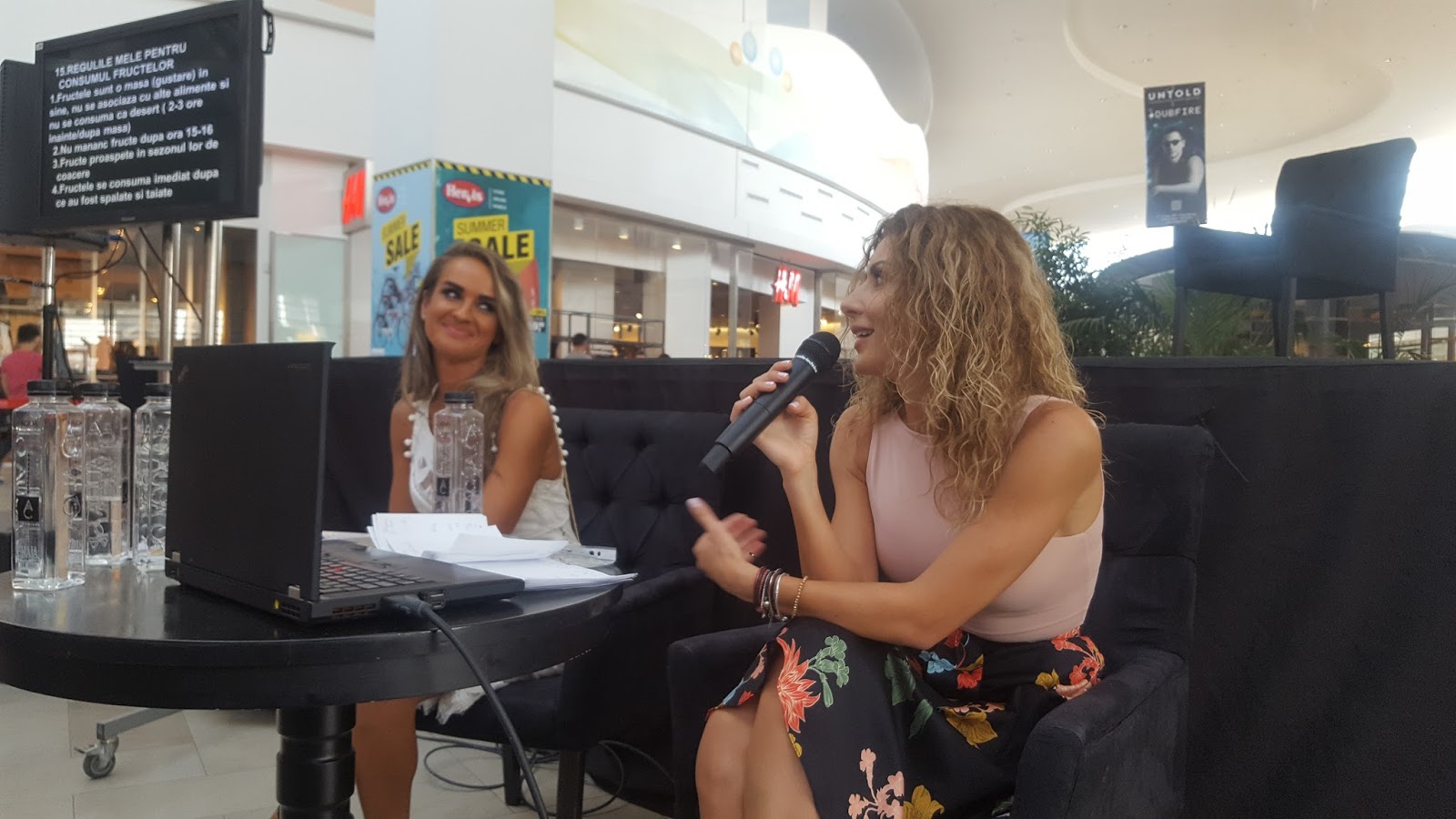Info Desk pentru workshopul de nutriție și beauty, iar Laura a mers în zona Food Court pentru discuții și