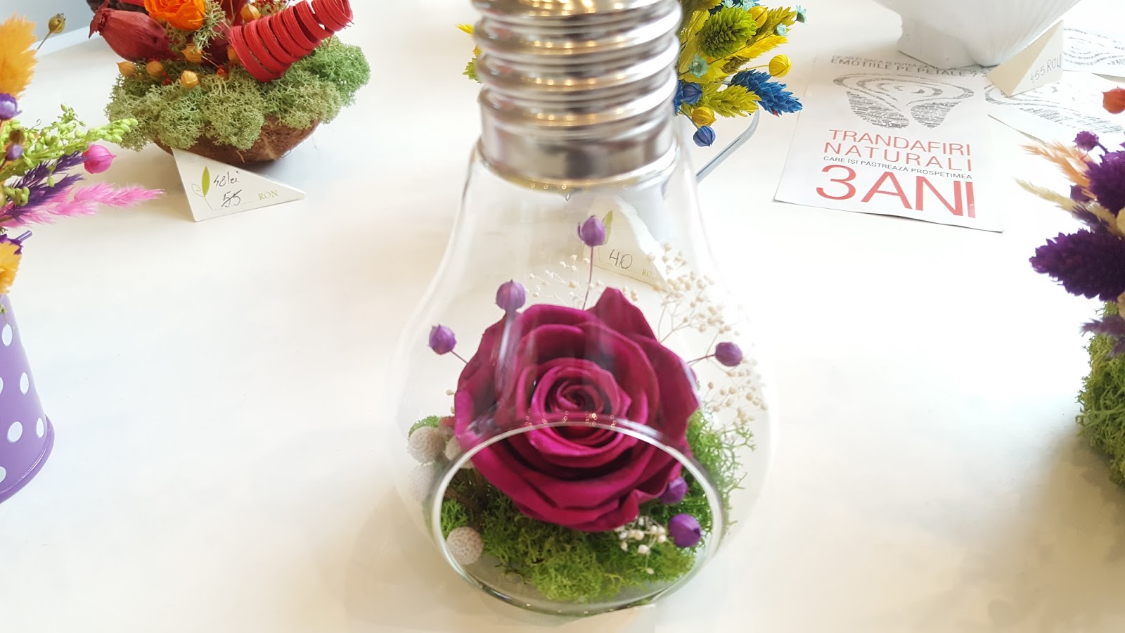 Prețurile te emoționează și ele, dar compensează cu aspectul și cu promisiunea prospețimii pe o perioadă așa mare. Becul ăsta cu trandafir roz e preferatul meu.