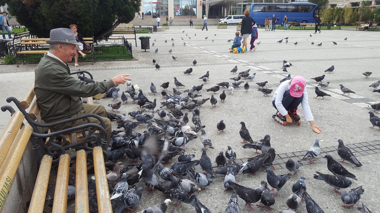 Locul îmi amintește mult de Timișoara, acolo am mai întâlnit porumbei așa prietenoși.