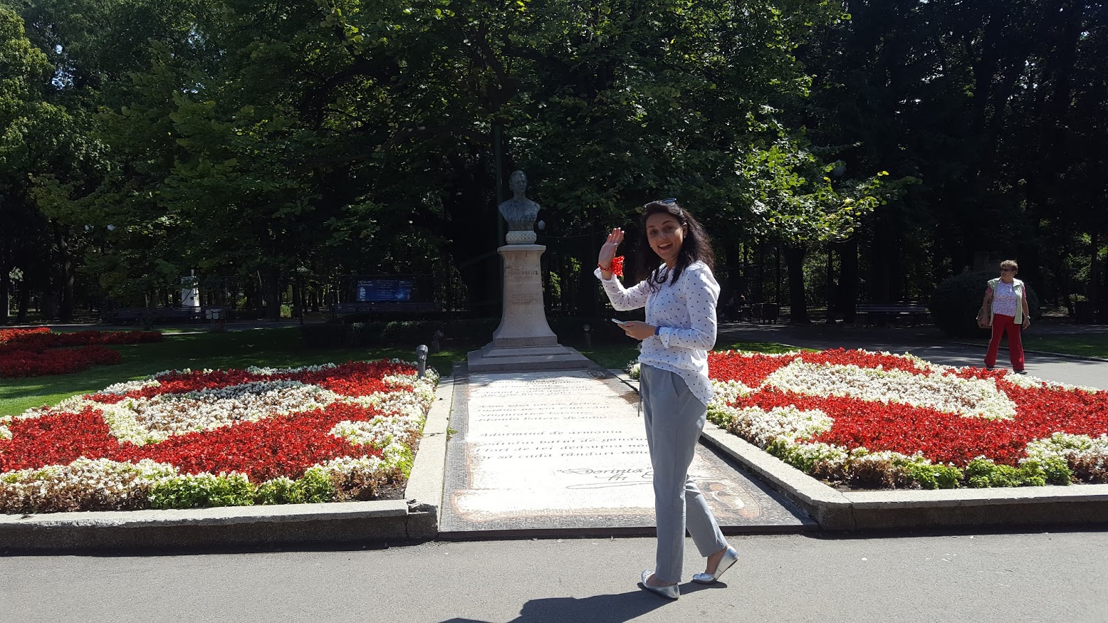 Iată și teiul lui Eminescu, statuia lui Eminescu și un om tare drag mie, Fabiola.